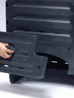 This is a compact composter that requires little space in your garden and is easy to assemble – no tools required! A large one-piece lid features built-in wind protection to keep the lid in place during inclement weather and a large flap with handle makes removing finished compost easy. Made from 100% recycled material that is UV-resistant to prevent fading.